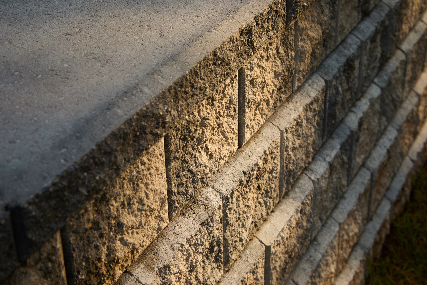 The faces of the stones that made up the wall had a rough, earthy texture to them, assisting the visual transition between the parking area and the rest of the lawn.