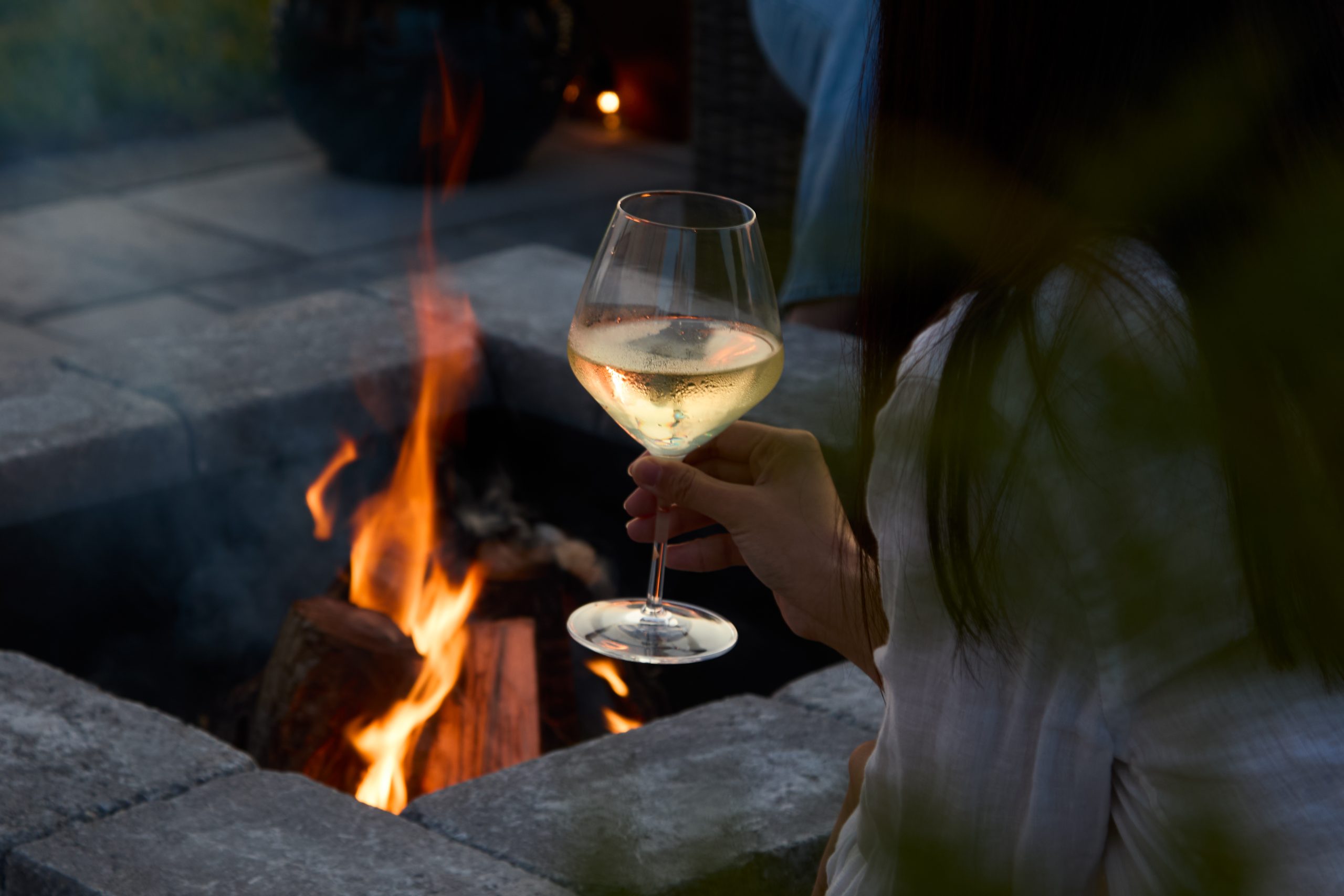 We agreed that clean lines and linear geometry would help achieve her aesthetic aspirations. We implemented a square-shaped fire pit, which helped draw the eye to the natural focal point of the patio. We discussed stone options, and helped her select the perfect paver stones to complement her siding colour as well as the architectural style of her home.